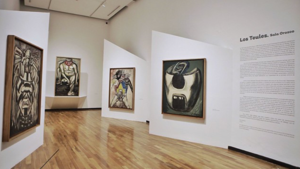 “Los Teules” (1947), es una serie pictórica compuesta por cinco piroxilinas de gran formato que pertenecen a la Colección de José Clemente Orozco, en resguardo del Museo Cabañas, y que muestra la atrocidad de Tenochtitlán. Son piezas monumentales centradas en una única pero contundente figura, en la que destacan la ausencia de elementos descriptivos y de escenas narrativas que aluden al conflicto, enfrentando al espectador a uno de los grandes enigmas planteados por Orozco.