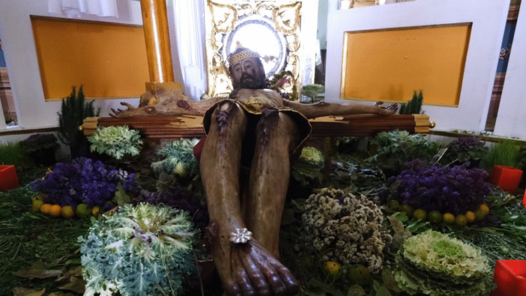 Estas imágenes, talladas con técnicas ancestrales, son testimonio de un sincretismo que fusionó el fervor católico con las raíces locales.