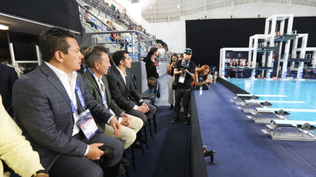“Tenemos la Copa Mundial de Clavados, que se celebra aquí en el Centro Acuático del municipio de Zapopan, y va a ser una competencia espectacular. Dénse una vuelta con sus hijas, con sus hijos. Aquí está German Sánchez ‘El Duva’, el entrenador Jahir Ocampo”, señaló el mandatario estatal.