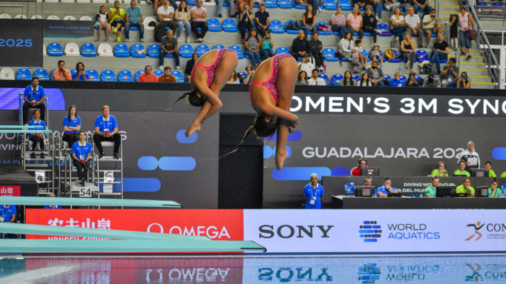 Las hermanas Lía y Mía Cueva demostraron su talento a nivel internacional al ganar la medalla de plata dentro de la Copa Mundial de Clavados Guadalajara 2025, que se realiza en el Centro Acuático Metropolitano de Zapopan.