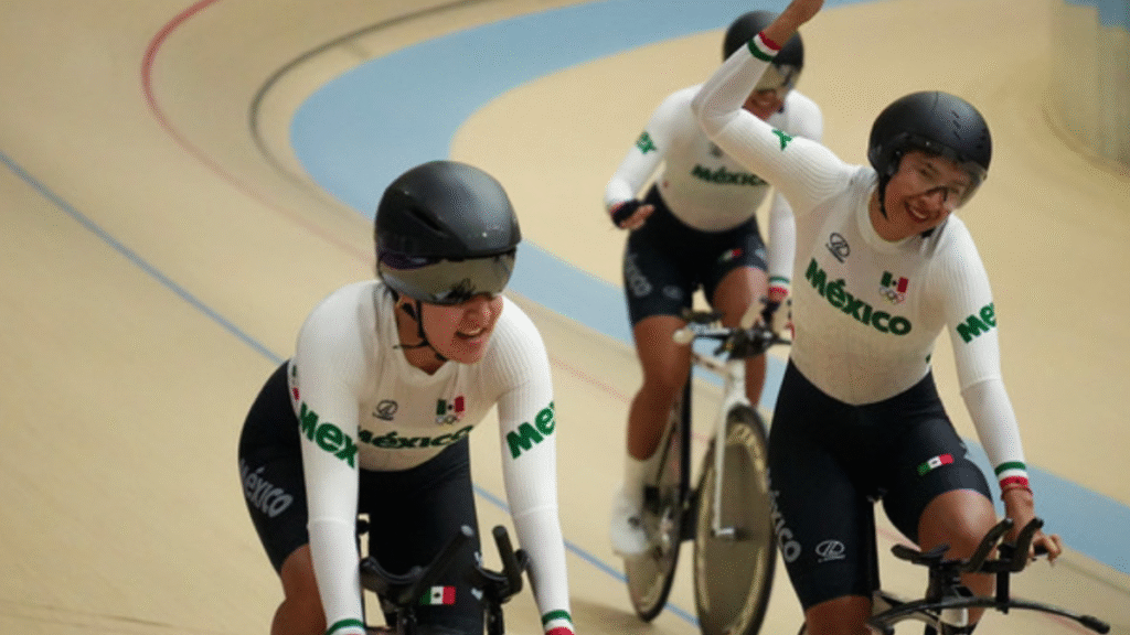 María Fernanda Figueroa Fernández, además de Fernando Gabriel Nava Romo y Kevin Manuel Ortega ganaron medalla de bronce con el equipo mexicano en la modalidad persecución por equipos femenil y varonil, respectivamente, en el ciclismo de pista.