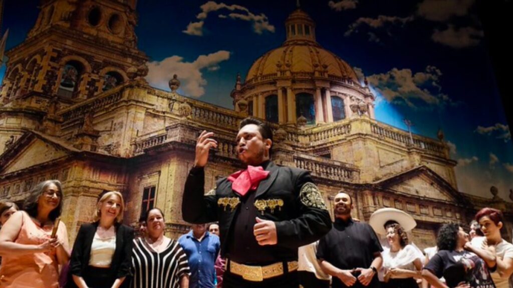 En escena, la zarzuela “El Orgullo de Jalisco”, articula una idea reconocible de identidad, tradición y vida popular. Hay charros, humor, romance, conflicto y estampas en un ambiente festivo en el centro tapatío. Hay, también, una voluntad por hacer convivir la tradición de la zarzuela con un entorno sonoro y visual cercano al imaginario jalisciense salpicado de mucho humor.