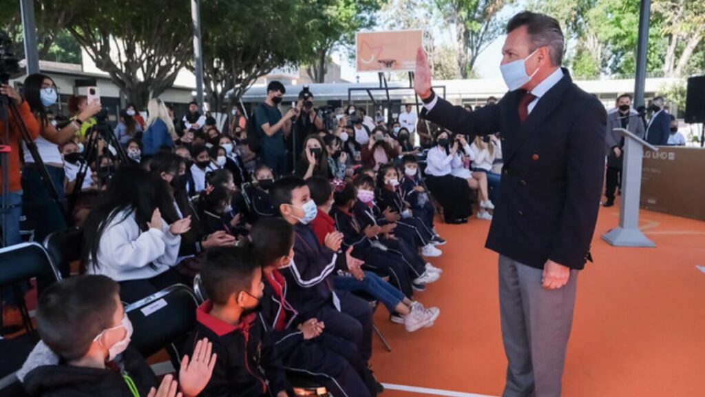“Hoy en la reactivación de clases, quise venir a esta escuela y enviar este mensaje a nuestras niñas y niños, a nuestras maestras y maestros. Debemos de conservarnos unidos en Jalisco, como lo hicimos durante esta emergencia (…) Jalisco está de pie, y todas y todos unidos vamos a trabajar en equipo por lograr esa paz tan anhelada que queremos”, subrayó el mandatario estatal.