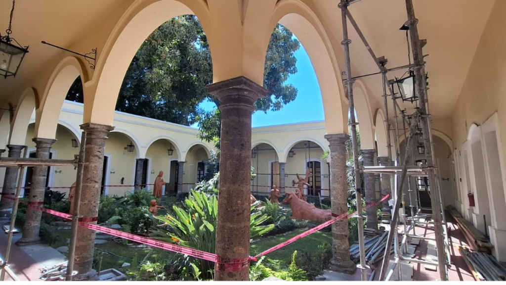 Estos trabajos se realizan tras detectarse un hundimiento en la zona, lo que llevó a una inspección conjunta con personal de la Secretaría de Infraestructura y Obra Pública (SIOP) del Gobierno del Estado. Como resultado de esta evaluación, se determinó la necesidad de reforzar 12 de las 16 columnas del Patio de los Naranjos que han presentado variaciones estructurales.