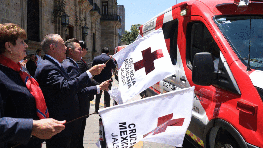 Las autoridades también encabezaron la entrega simbólica de seis nuevas ambulancias, adquiridas por la Cruz Roja Delegación Jalisco, para fortalecer la operatividad y aumentar la capacidad de respuesta ante emergencias en distintos puntos de la entidad.