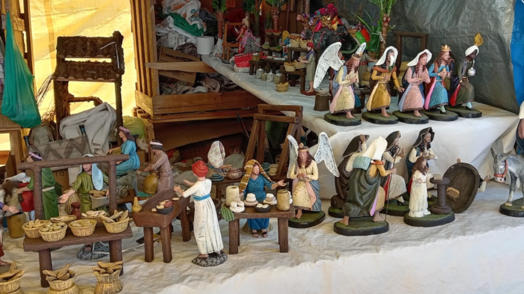 Faustino Díaz Loza, artesano de San Pedro Tlaquepaque, compartió que en esta feria, realizada en el velódromo de la delegación, los nacimientos tradicionales de Tlaquepaque han ganado un lugar especial. Las piezas varían en tamaño y calidad: desde pequeños nacimientos económicos de 250 pesos hasta creaciones detalladas que superan los 40 centímetros y destacan por su pintura y cuidadosa elaboración con un precio de dos mil 500 pesos. Además, los visitantes pueden adquirir aditamentos como burros, gallinas, pollitos, pastores, caballos, y otros elementos que enriquecen cada representación navideña.