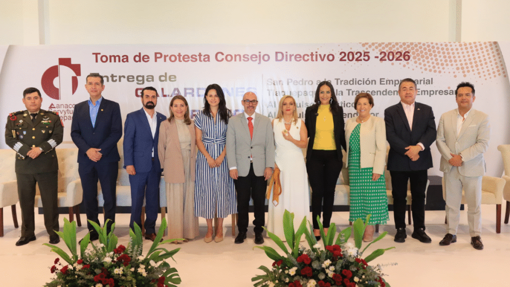 La presidenta de San Pedro Tlaquepaque, Laura Imelda Pérez Segura, asistió a la toma de protesta de las y los integrantes del Consejo Directivo de la Cámara Nacional de Comercio del municipio (CANACO) 2025-2026, presidido por Angélica Aguayo Pérez.