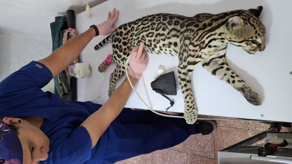 Especialistas de la Unidad de Rescate de Fauna Silvestre de Tlajomulco atienden a un ocelote, esto luego de que se recibiera reporte que durante la noche de ayer o madrugada de hoy, se registró el atropellamiento de un ocelote en el municipio de Mascota.