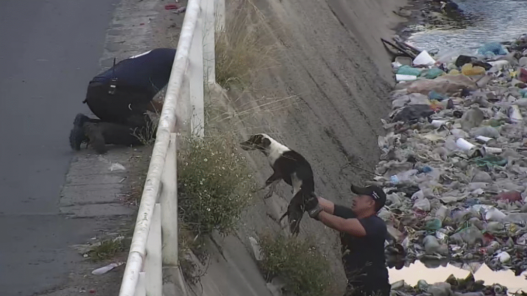 Bomberos de Tlajomulco rescataron un perrito que cayó en un canal de aguas pluviales en Chulavista