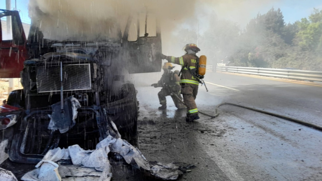 Bomberos de Tlajomulco sofocaron incendio en tráiler sobre Carretera a Morelia