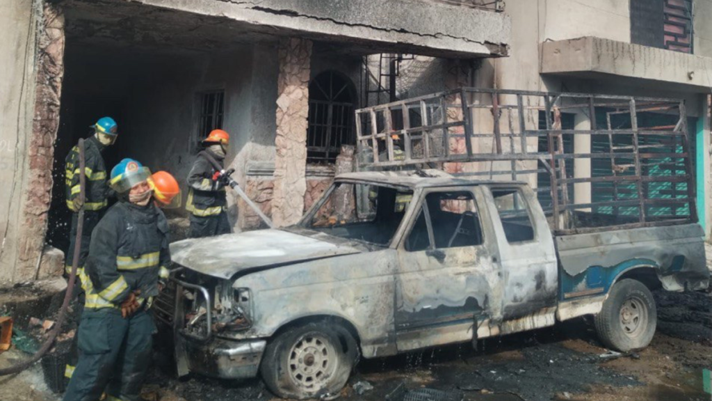 Todo en el interior de la casa se vio calcinado al igual que la camioneta que estaba estacionada sobre la calle.