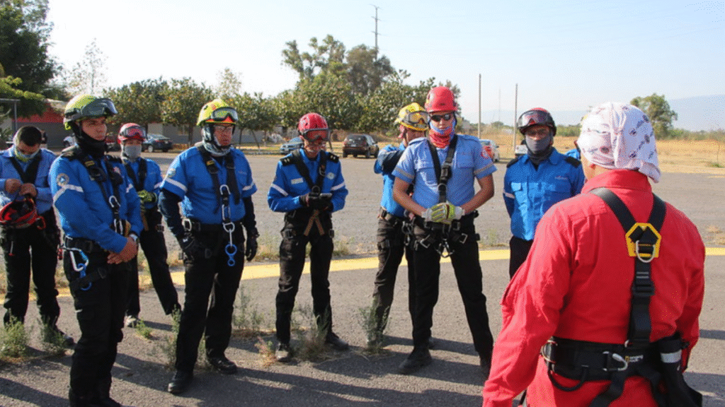 12 oficiales de Protección Civil y Bomberos de Tlajomulco participaron en el curso taller «Operaciones Helitransportadas de Emergencia», certificado por la Agencia Federal de Aviación Civil (AFAC), el cual fue impartido por instructores de las empresas 3Elements y Era S.C., con el propósito de fortalecer las capacidades de acción de los elementos, especialmente dentro del temporal de estiaje, en el que el riesgo de que se registren incendios forestales es muy alto.
