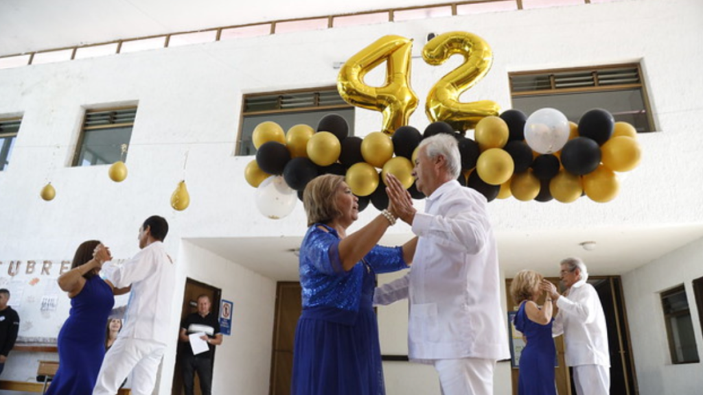 La Directora de Atención a Personas Adultas Mayores en el organismo asistencial, Angélica Contreras Robles platicó la transformación por la que ha atravesado este centro al pasar del tiempo, fortaleciendo la convivencia entre los maestros y asistentes al compartir sus conocimientos, historias y experiencias de vida. “42 años se dicen fáciles muchos de ellos tienen diferentes etapas, pero si quiero agradecerles todo lo que aportan, toda la vibra, toda la energía, y todo lo que suman a cada una de las vidas de nuestros asistentes y de nuestros adultos mayores”, expresó.