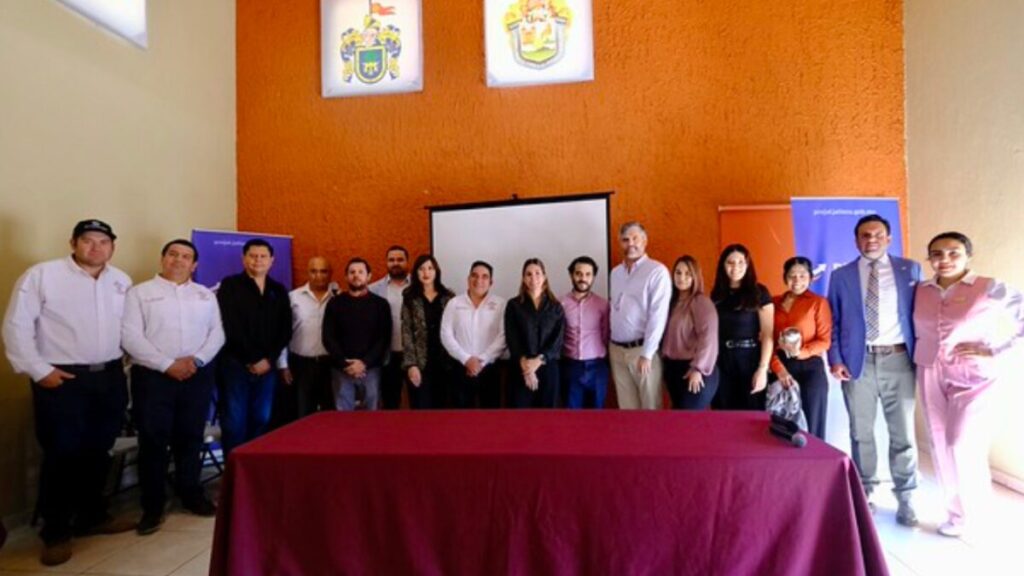 Durante la firma de convenio, se contó con la presencia de Abel Vázquez, Presidente Municipal de Tototlán; Cindy Blanco Ochoa, Secretaria de Desarrollo Económico y Miguel Ángel Bush, Director General de PROJAL.
