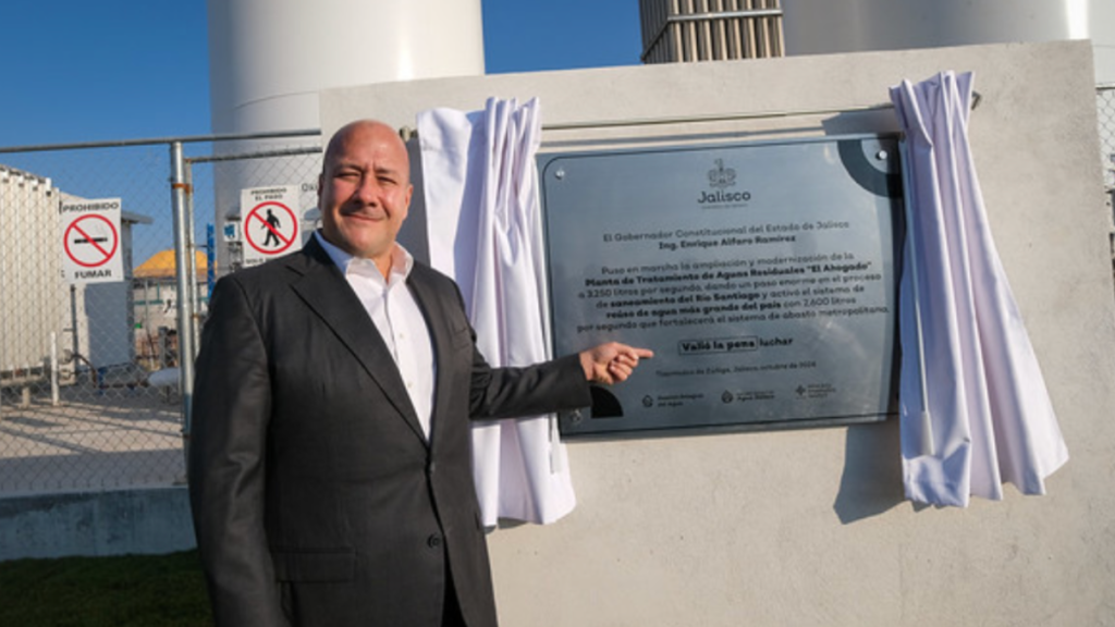El Gobernador del Estado de Jalisco, Enrique Alfaro Ramírez, puso en marcha la ampliación y modernización de la Planta de Tratamiento de aguas residuales (PTAR) El Ahogado, el sistema de reúso de agua más grande de México al tratar 3 mil 250 litros de agua por segundo. La planta con una inversión total de 2 mil mdp, incluyendo colectores y la Presa La Calera, cuenta con capacidad para realizar tratamiento terciario con generación e inyección de ozono, dando cumplimiento a la NOM-001-SEMARNAT-2021, que es la más estricta en la materia.