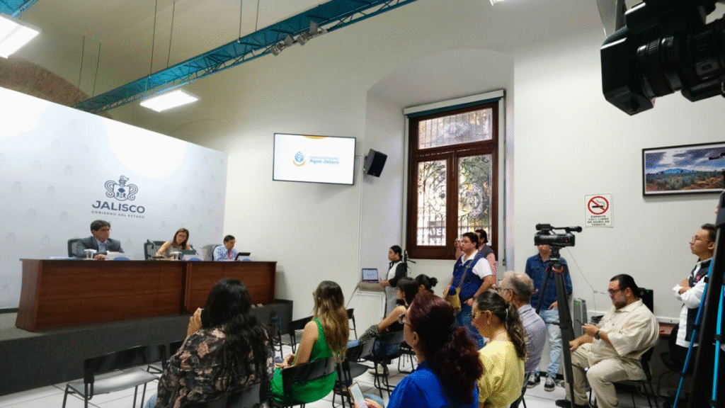 Karina Hermosillo Ramírez, Coordinadora General Estratégica de Gestión del Territorio, Ernesto Marroquín Álvarez, titular de la Secretaría de Gestión Integral del Agua (SGIA), y Mario López Pérez, Director General de la Comisión Estatal del Agua (CEA), explicaron en conferencia de prensa que el proyecto no busca extraer más agua del Lago de Chapala, sino que permitirá tener la infraestructura para aprovechar la totalidad de los 7.5 metros cúbicos por segundo concesionados a la ciudad.
