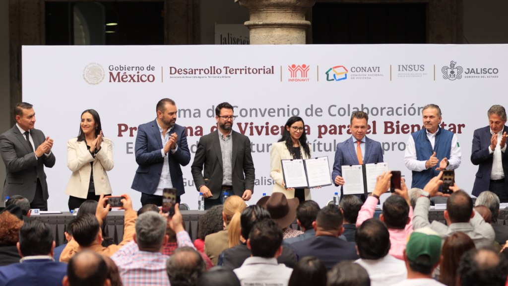 La presidenta municipal de San Pedro Tlaquepaque, Laura Imelda Pérez Segura, firmó el convenio de colaboración del Programa de Vivienda para el Bienestar, impulsado por el Gobierno Federal de Claudia Sheinbaum, en coordinación con autoridades federales, estatales y municipales, entre los que estuvieron presentes Octavio Romero Oropeza, Director del Infonavit; José Alfonso Iracheta Carroll, Director del Instituto Nacional del Suelo Sustentable (INSUS).