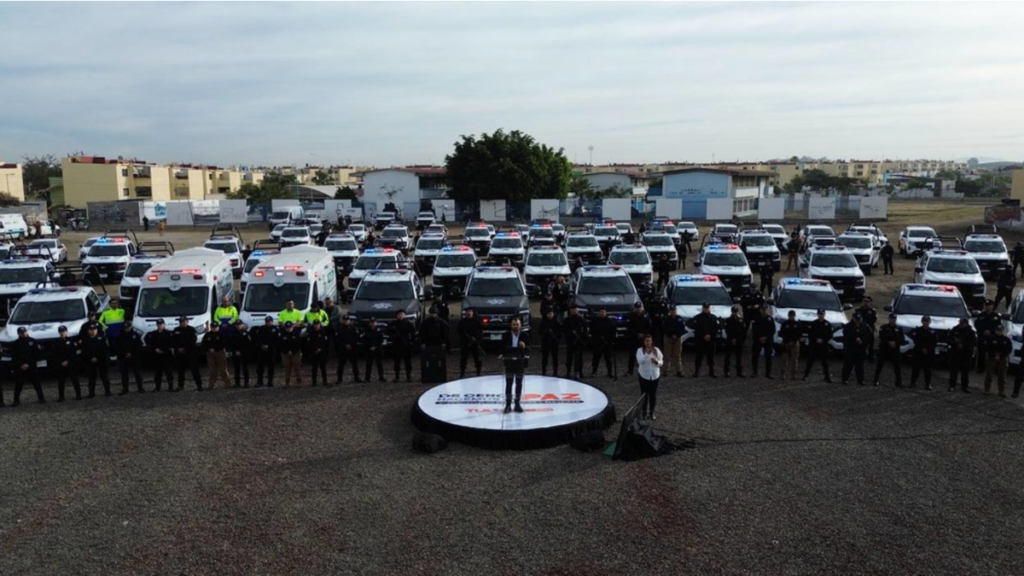 En Tlajo, de cerca hacemos la paz y en pleno corazón del fraccionamiento Lomas del Mirador, en la zona Valle, Gerardo Quirino Velázquez Chávez, presidente municipal, presentó la estrategia de seguridad y prevención, además de dar el banderazo de salida para las 90 nuevas unidades con las que se refuerza la Coordinación de Servicios de Emergencia y Seguridad Preventiva.