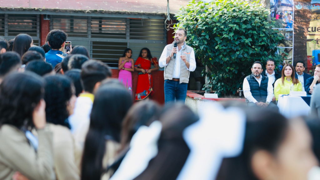 Además, como todos los lunes, Gerardo Quirino Velázquez Chávez, aprovechó la visita a la para rendir honores a la bandera y escuchar las necesidades de los directivos del plantel educativo, quiénes solicitaron al presidente municipal el apoyo para la colocación de malla sombra en su patio principal.