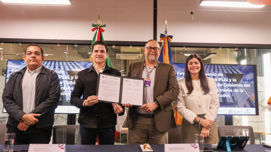 Con el objetivo de fortalecer las capacidades tecnológicas de las juventudes jaliscienses y avanzar hacia la construcción de un oasis de talento, la Secretaría General de Gobierno y la Plataforma Abierta de Innovación (PLAi), firmaron un convenio de colaboración que permitirá ofrecer contenidos formativos innovadores y accesibles para las y los jóvenes en todo el estado.