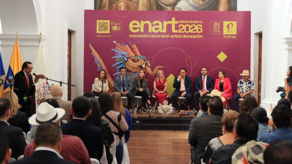 Al reunir a los mejores artesanos y fabricantes mexicanos, este día se inauguró la Exposición Nacional de Artículos de Regalo y Decoración Mexicana (Enart) en su edición Invierno 2026, en donde estuvieron presentes el secretario de Fomento Económico y Cultural, Juan David García Camarena; la presidenta de la Camara Nacional de Comercio y Servicios de Tlaquepaque, Angélica Aguayo Pérez y la secretaria de Desarrollo Económico del Gobierno del Estado de Jalisco, Cindy Blanco Ochoa. En esta edición se reconocerá a los artesanos cuyas piezas sean inspiradas en el mundial 2026.