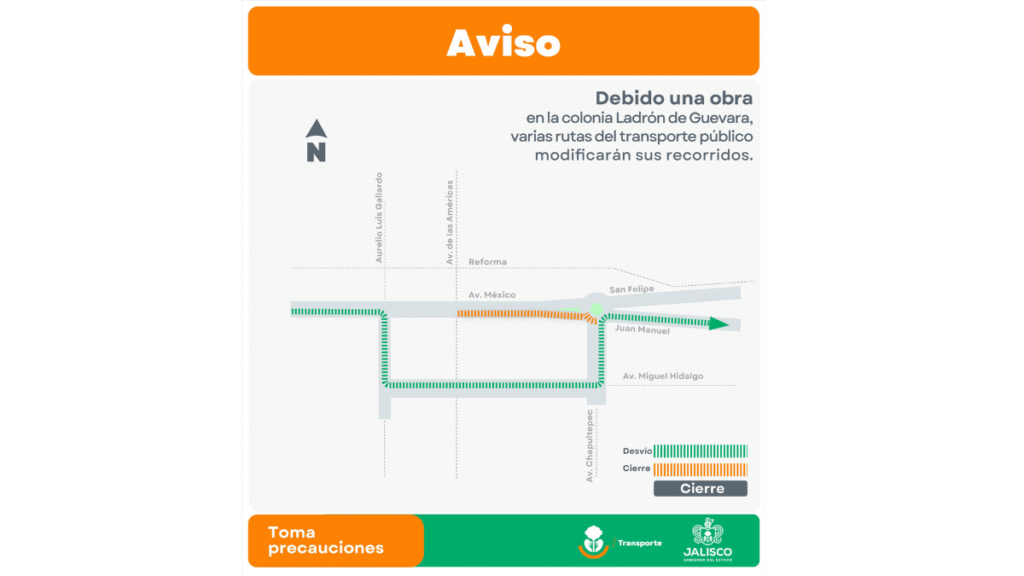 Se invita a la ciudadanía a mantenerse informada a través de las redes sociales de la Secretaría de Transporte, en Facebook como @SecretariadeTransporteJal y en X como @TransporteJal, para conocer más sobre estos y otros desvíos.