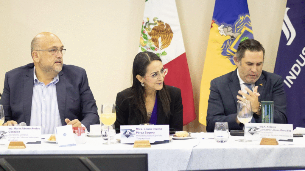 La presidenta municipal de San Pedro Tlaquepaque, Laura Imelda Pérez Segura, asistió a la Sesión Ordinaria del Consejo de Cámaras Industriales de Jalisco, donde dialogó sobre su proyecto de trabajo encaminado al bienestar de todos los sectores para el desarrollo de la ciudad.