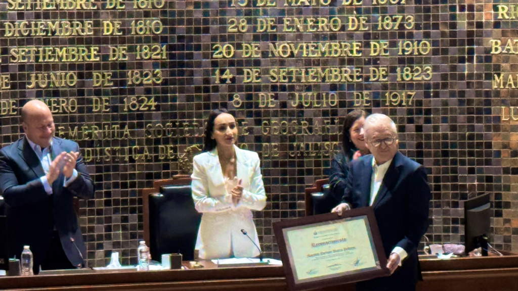 Durante una sesión solemne, los miembros de la LXIII Legislatura otorgaron un merecido reconocimiento al maestro Enrique Ibarra Pedroza por su destacada labor en el fortalecimiento del desarrollo político y democrático del estado, así como por su notable impulso al patrimonio histórico de Jalisco.