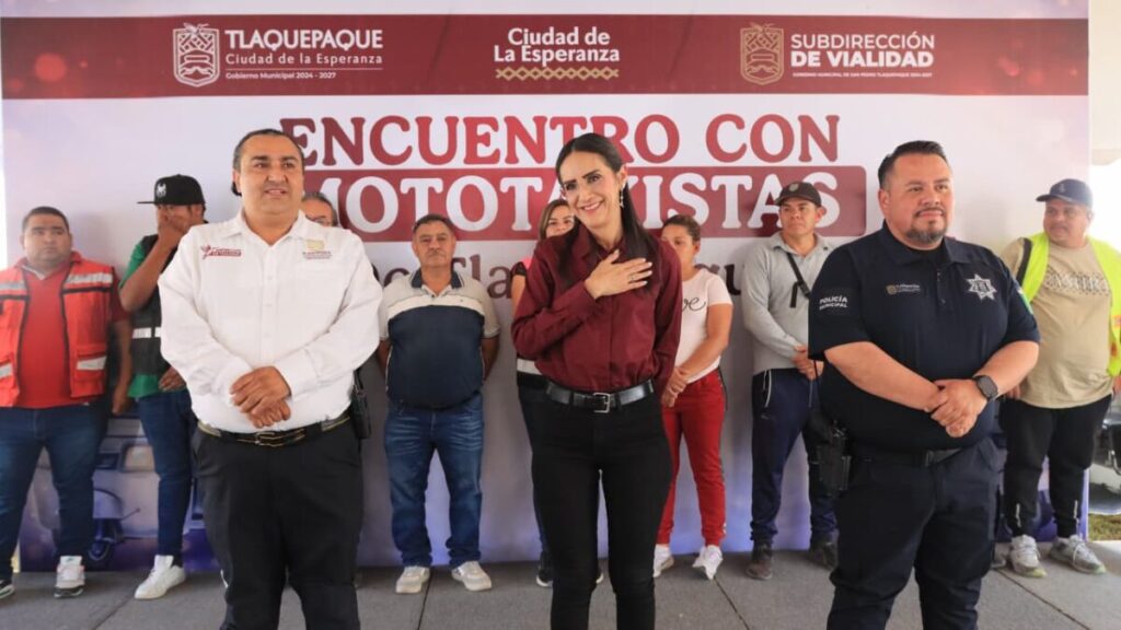 En este contexto, la presidenta municipal de San Pedro Tlaquepaque, Laura Imelda Pérez Segura, sostuvo una reunión con alrededor de 400 operadores de mototaxis, con el objetivo de conocer y escuchar sus necesidades, así como hacer entrega de chalecos que les brindarán identidad y contribuirán a garantizar mayor seguridad en las bases identificadas en el municipio.