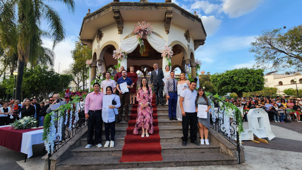 De esta manera, fueron 338 parejas que bajo el atardecer y con el kiosco del Jardín Hidalgo como escenario, pudieron disfrutar de una fiesta con un grupo de banda y así ver su amor consolidado con el respaldo legal que se merecen.