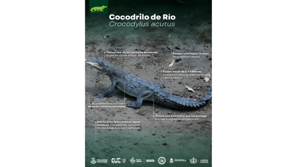 También explicó que la temporada reproductiva del cocodrilo de río se extiende de febrero a julio, con nacimientos principalmente en julio y agosto, por lo que este periodo requiere especial precaución.