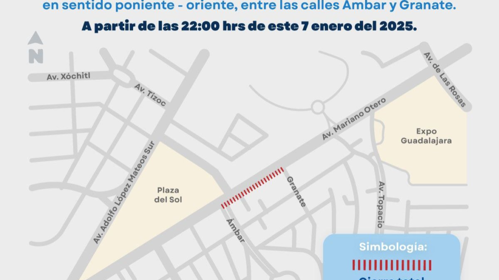 Para esto se aplicará un cierre vial en la lateral del punto mencionado, entre las calles Ámbar y Granate.