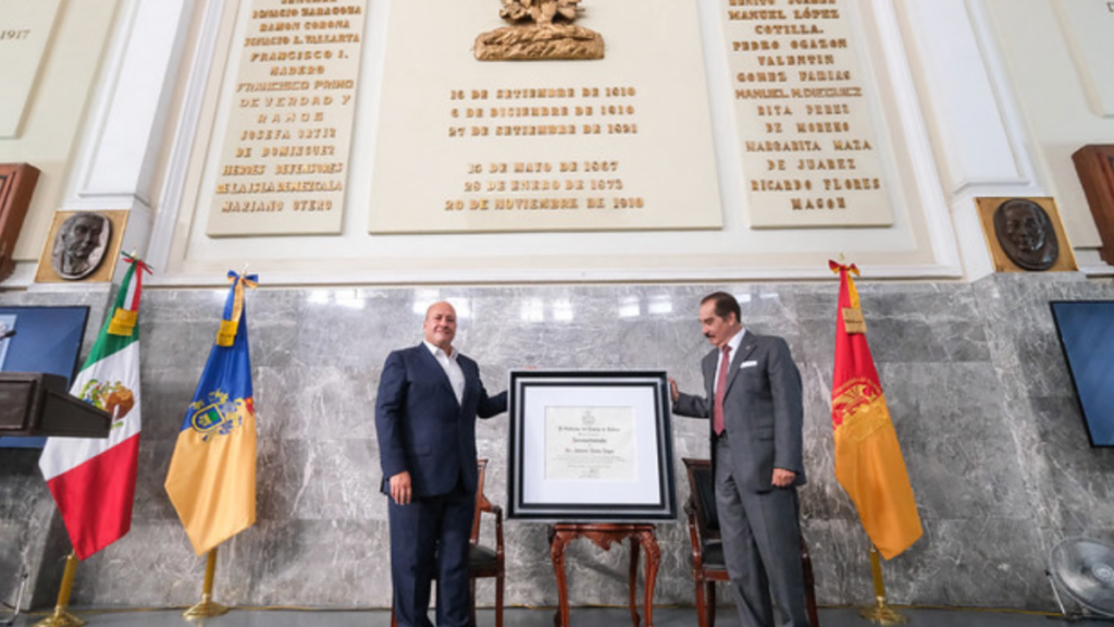 En el ex recinto Legislativo en Palacio de Gobierno, el Gobernador del Estado, Enrique Alfaro Ramírez, reconoció este martes la trayectoria, humanismo y visión para adaptarse a los nuevos tiempos, del rector de la Universidad Autónoma de Guadalajara (UAG), Antonio Leaño Reyes, quien con 20 años al frente de la rectoría de esta casa de estudios, llevará a cabo la celebración del 90 aniversario de la que fue la primera universidad privada en México.