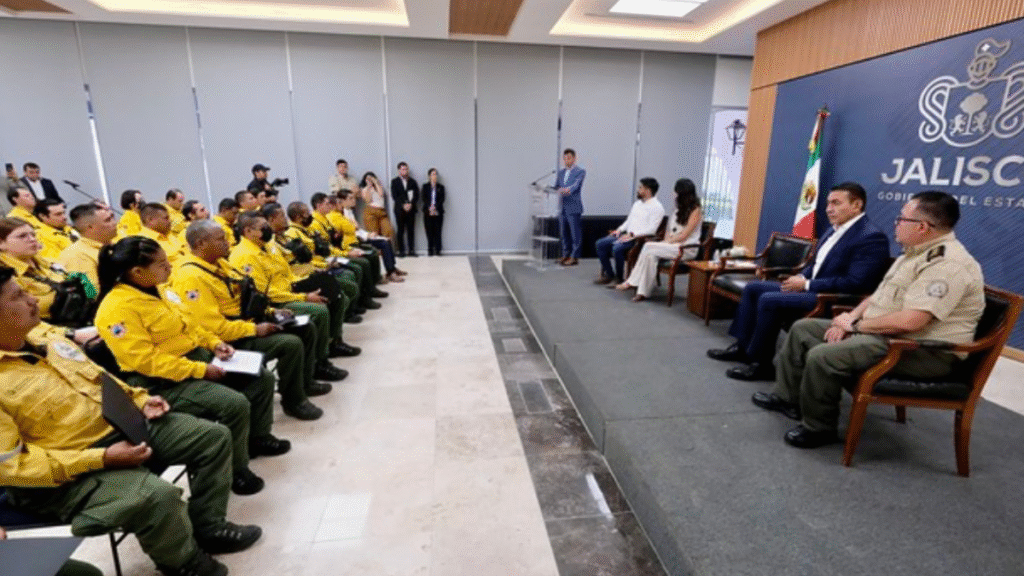 Pablo Lemus Navarro, Gobernador de Jalisco, encabezó la entrega simbólica realizada a 30 combatientes forestales en las instalaciones de Casa Jalisco, a quienes reconoció su entrega, valentía y vocación de servicio, fundamentales para proteger los ecosistemas y la seguridad de las comunidades.