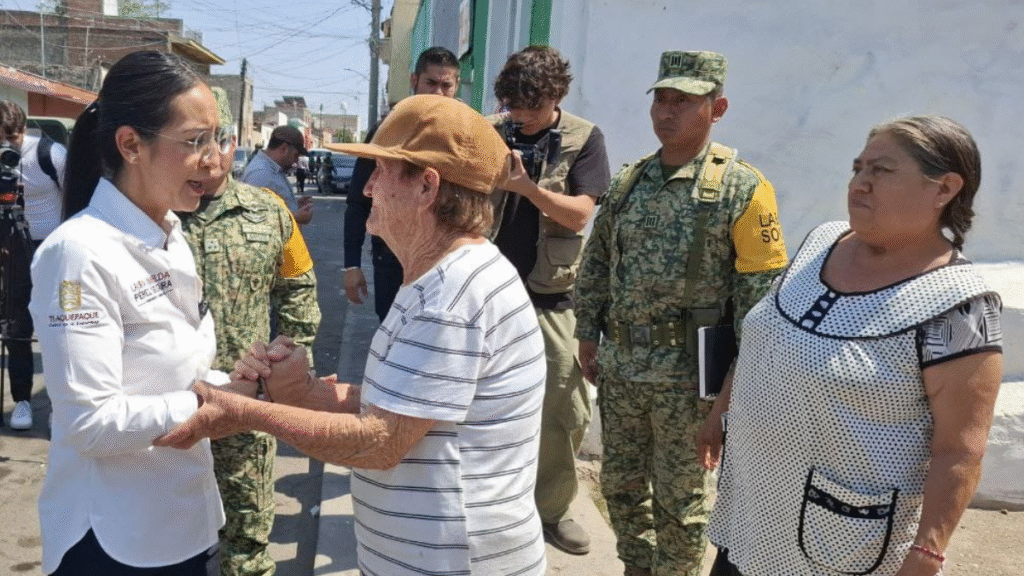 «Agradezco la coordinación que hemos logrado con la SEDENA y Guardia Nacional que hoy se hacen presentes aquí, no nada más con cisternas sino también con pipas y personal. Equipo que vamos a formar entre Sedena, Guardia Nacional y Ayuntamiento de San Pedro Tlaquepaque para distribuir agua en toda esta zona», detalló Laura Imelda Pérez Segura, presidenta municipal de San Pedro Tlaquepaque.