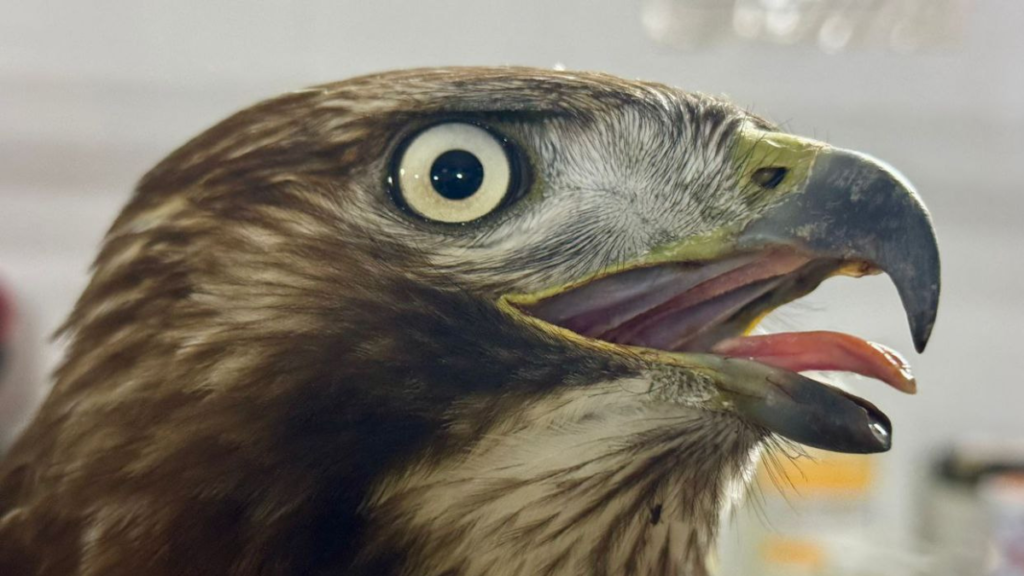 Se trata de un ejemplar hembra juvenil de aguililla de cola roja, con un peso de un kilogramo con 227 gramos, con aparente buen estado, sin facturas aparentes, con una buena condición corporal.