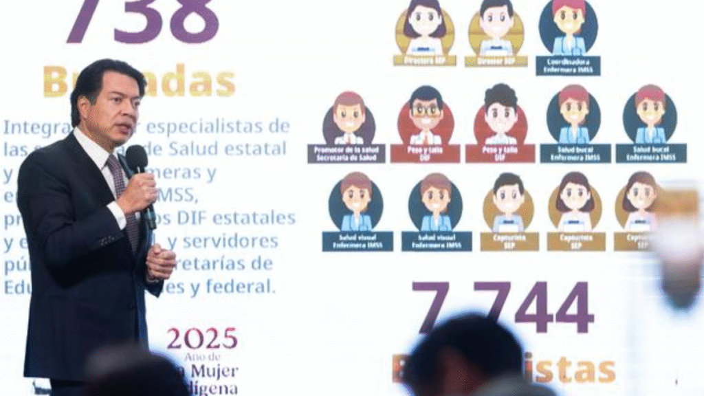 En la conferencia matutina: “Las mañaneras del pueblo”, que encabezó la secretaria de Gobernación, Rosa Icela Rodríguez Velázquez, el secretario de Educación Pública, Mario Delgado Carrillo, destacó que la estrategia Vive saludable, vive feliz es una intervención sin precedentes que se realiza con el apoyo de 738 brigadas integradas por 7 mil 744 especialistas de salud estatal y federal, enfermeras y enfermeros del Instituto Mexicano del Seguro Social (IMSS), promotoras de los DIF estatales y del Sistema Nacional para el Desarrollo Integral de la Familia (SNDIF), además de servidores públicos de la SEP.