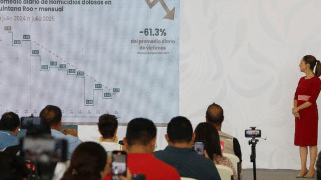 En 10 meses, se reducen 61.3% los homicidios dolosos en Quintana Roo: Presidenta Claudia Sheinbaum