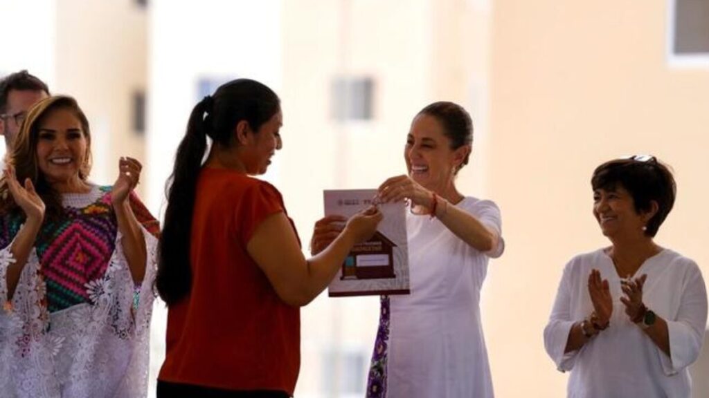 En Playa del Carmen, Quintana Roo, la Presidenta Claudia Sheinbaum Pardo encabezó la entrega de 225 viviendas nuevas del Instituto del Fondo Nacional de la Vivienda para los Trabajadores (Infonavit), como parte del programa Vivienda para el Bienestar, además de 497 liberaciones de hipoteca del Fondo de Vivienda del Instituto de Seguridad y Servicios Sociales (Fovissste) y 193 escrituras del Instituto Nacional del Suelo Sustentable (INSUS).