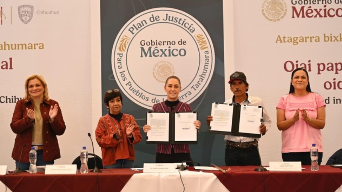 “Estamos una vez más aquí en la Sierra, ahora con el pueblo Ódami, para entregar tierra. Se trata de entregarles lo que siempre fue de ustedes, pero que no había sido reconocido: 3 mil hectáreas que se están entregando el día de hoy para que ustedes puedan reconocerse y hacer justicia en el territorio, justicia territorial. Esto es parte del Plan de Justicia de los pueblos de la Sierra Tarahumara”, informó.