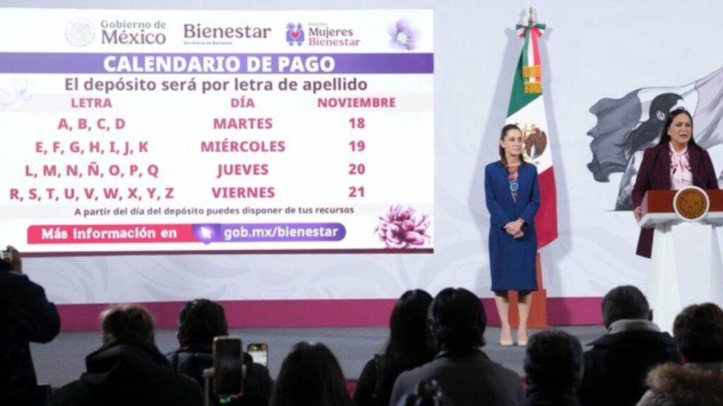 El Gobierno de México, a través de la Secretaría de Bienestar, informó que, del 18 al 21 de noviembre, las mexicanas de entre 60 y 64 años que se registraron en agosto a la Pensión Mujeres Bienestar y recibieron su tarjeta en octubre, se les otorgará su primer pago de este apoyo de 3 mil pesos bimestrales.
