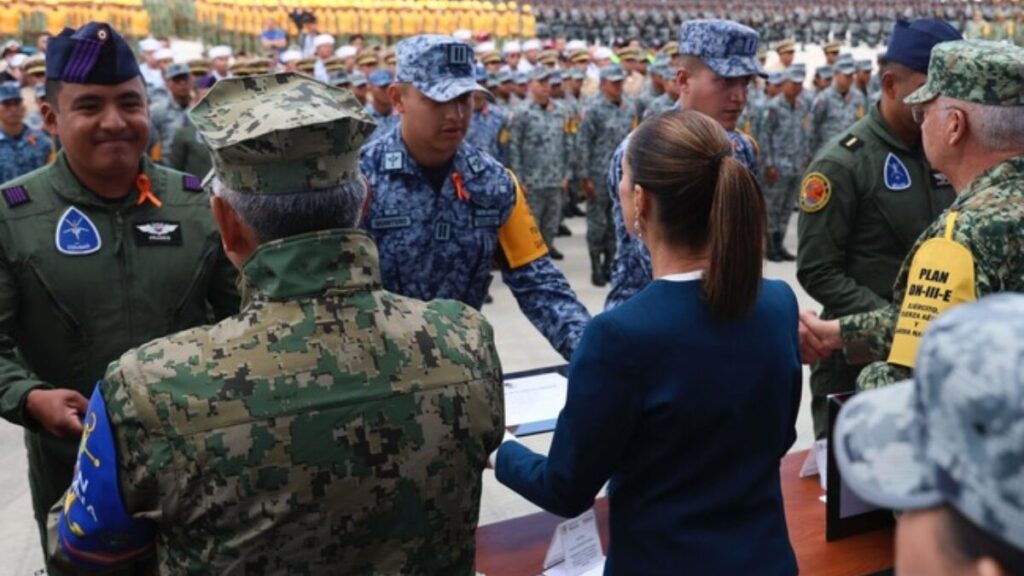 Desde el Centro Estratégico Militar de Acopio, la Presidenta de México, Claudia Sheinbaum, rindió homenaje y reconoció al personal que participó en la aplicación del Plan DN-III-E y Plan Marina en Hidalgo, Puebla, Querétaro, San Luis Potosí y Veracruz, tras las intensas lluvias que se presentaron el pasado octubre, y a quienes agradeció por sus esfuerzos para atender la emergencia en un mes y con ello demostrar que la patria es más fuerte que cualquier adversidad.