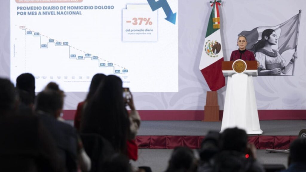 “La disminución en el número de homicidios diarios de septiembre de 2024 a noviembre de 2025, es del 37 por ciento, eso significa que en septiembre hubo 86.9 homicidios diarios y ahora estamos en un promedio de 54.7 homicidios dolosos diarios, una reducción del 37 por ciento. Es el noviembre más bajo desde 2015, incluso probablemente más; entre otros delitos que también han disminuido.