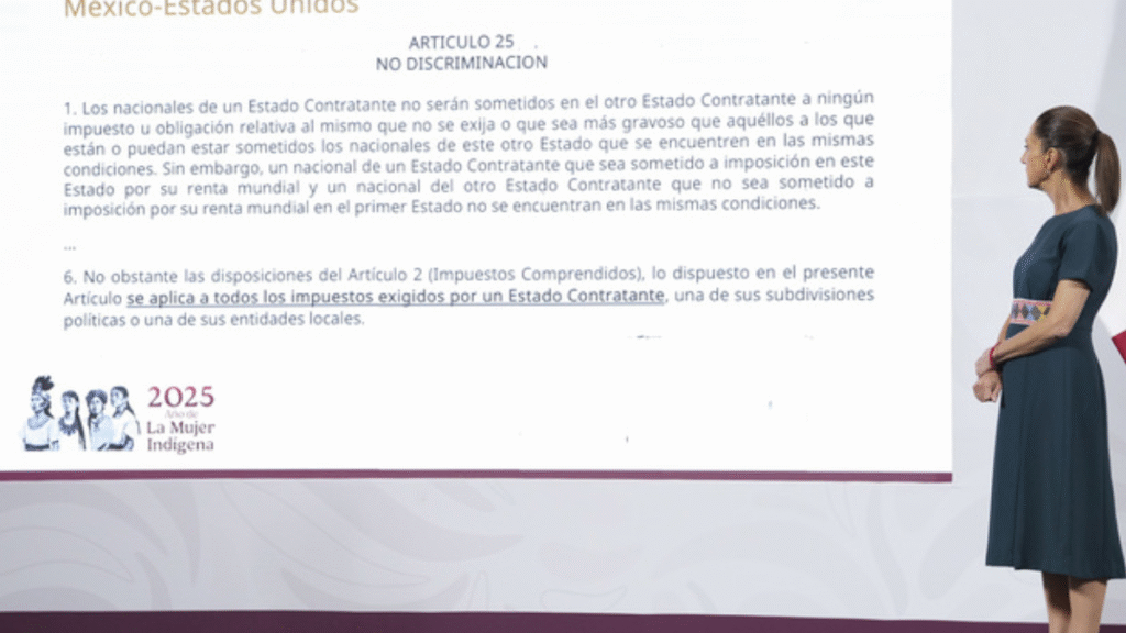 La Presidenta Claudia Sheinbaum Pardo aseguró que la propuesta de imponer un impuesto del 5 por ciento a las remesas, como lo proponen congresistas republicanos en la Cámara de Representantes de Estados Unidos, es un acto discriminatorio y, además, viola el Tratado para Evitar la Doble Tributación entre México y EUA —que está vigente desde 1994—, afectando a los que menos tienen y a nuestros paisanos que viven en EUA.
