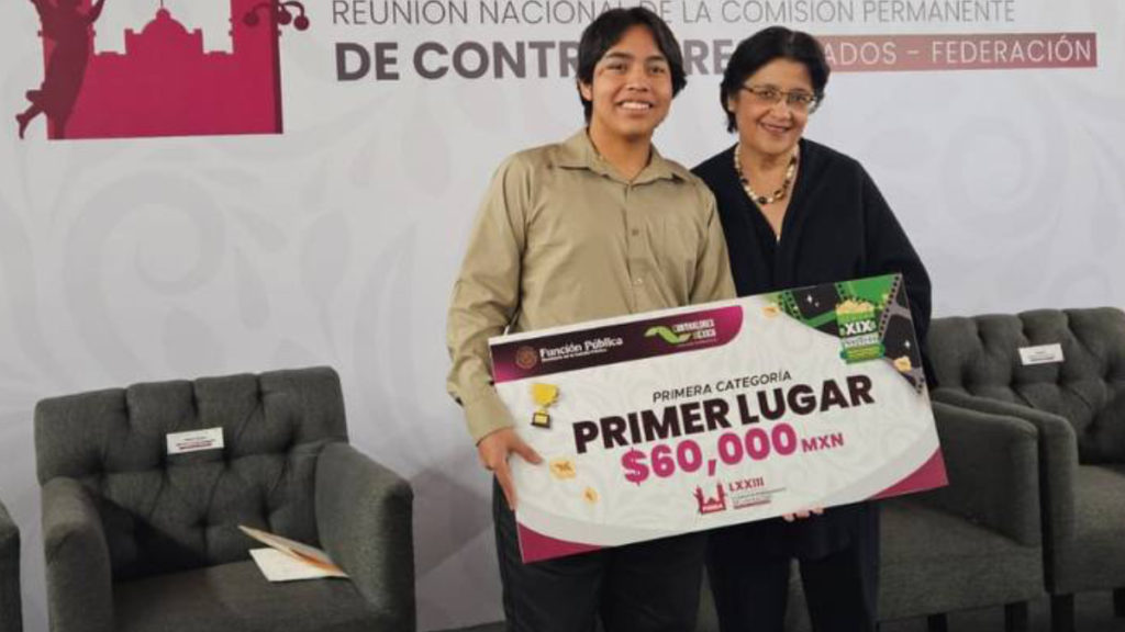 Este reconocimiento fue otorgado al joven jalisciense Erick Díaz Gutiérrez por su cortometraje #TodosSomosJorgeyJavier, una obra que destaca por su impacto en la sensibilización sobre temas de transparencia y lucha contra la corrupción.
