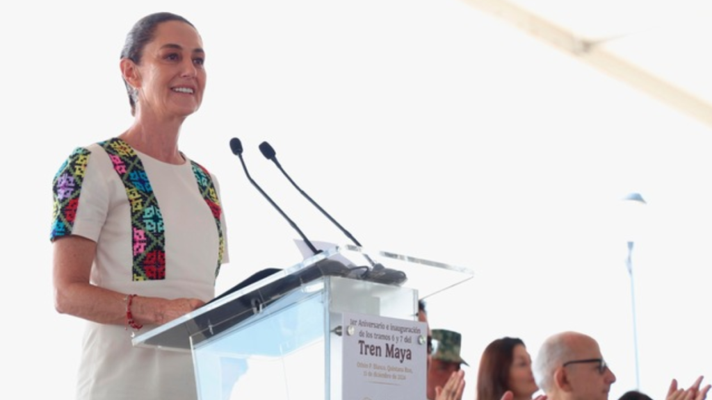 Al encabezar el primer aniversario e inauguración de los tramos 6 y 7 del Tren Maya, con lo cual se completan los 1,554 kilómetros de vía, la Presidenta Claudia Sheinbaum Pardo sostuvo que este transporte ferroviario es un símbolo de la Cuarta Transformación, que le dice al mundo que México es una gran nación con un pueblo consciente y politizado.