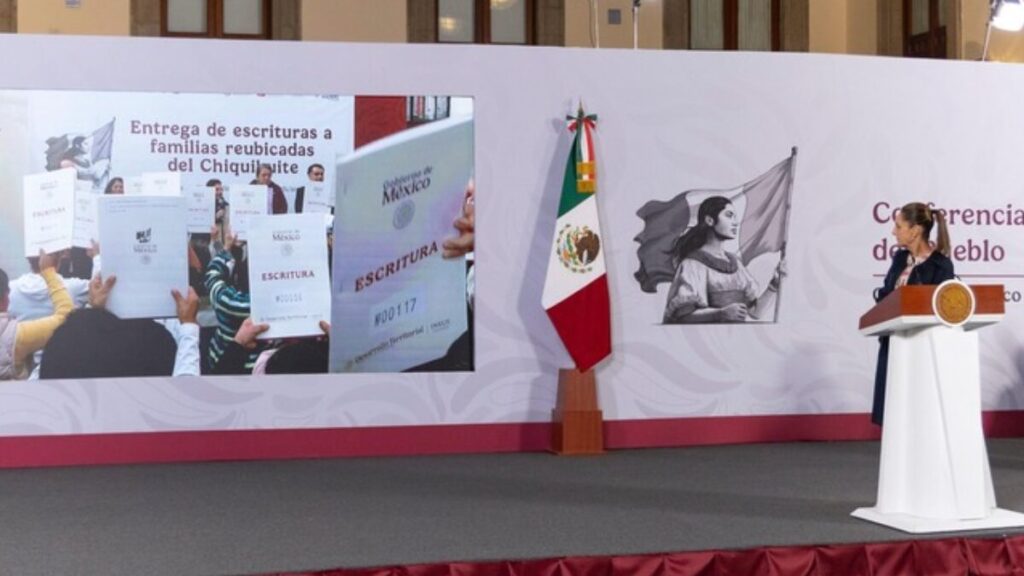 Desde la conferencia matutina: “Las mañaneras del pueblo”, la Presidenta de México, Claudia Sheinbaum Pardo, encabezó la entrega de escrituras a 354 familias que fueron reubicadas del Chiquihuite, en la alcaldía Gustavo A. Madero, como parte de un compromiso que hizo durante su gestión como jefa de Gobierno en la Ciudad de México.