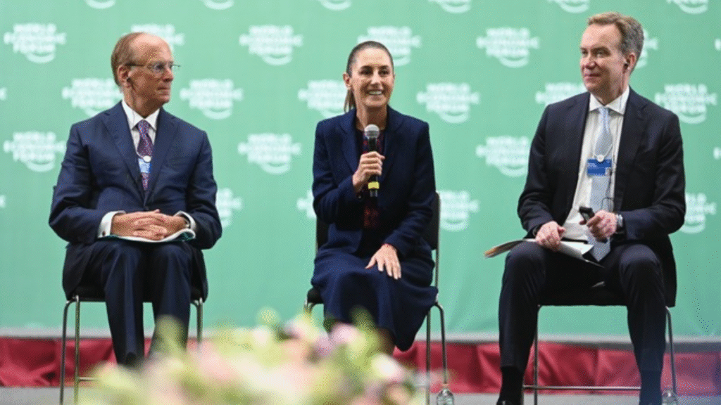 La Presidenta Claudia Sheinbaum Pardo presentó, ante empresarias y empresarios de 17 países miembros del Foro Económico Mundial, el Plan México y sus objetivos: fortalecer el mercado interno y el salario, así como la inversión pública y privada, aumentar la soberanía alimentaria, energética y la producción nacional, reduciendo las importaciones con países con los que no se tiene tratado comercial. Además, expuso el optimismo del Gobierno de México en su relación con sus socios comerciales de América del Norte: Estados Unidos y Canadá.