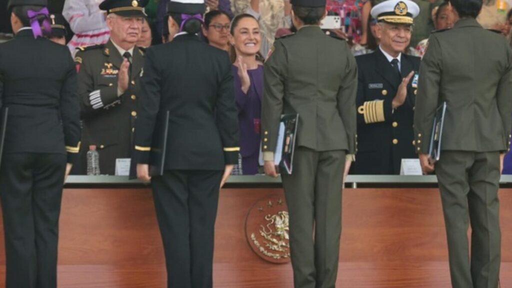 “Las mujeres de las Fuerzas Armadas. Mujeres del Ejército, de la Fuerza Aérea y de la Marina, Armada de México. Mujeres que portan con orgullo el uniforme. Mujeres que sirven a México con honor. Ustedes representan la continuidad de esa historia, de heroínas. Son parte de generaciones que han demostrado que el amor por la patria no tiene género, que el valor no tiene género y que el compromiso con México nace del corazón”, enfatizó.