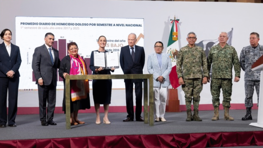 Durante el informe de resultados del Gabinete de Seguridad, la Jefa del Ejecutivo Federal destacó que el primer semestre del 2025, del 1 de enero al 30 de junio, es el de menos homicidios desde 2016 y aseguró que este delito continuará reduciendo gracias a la implementación de la Estrategia Nacional de Seguridad.